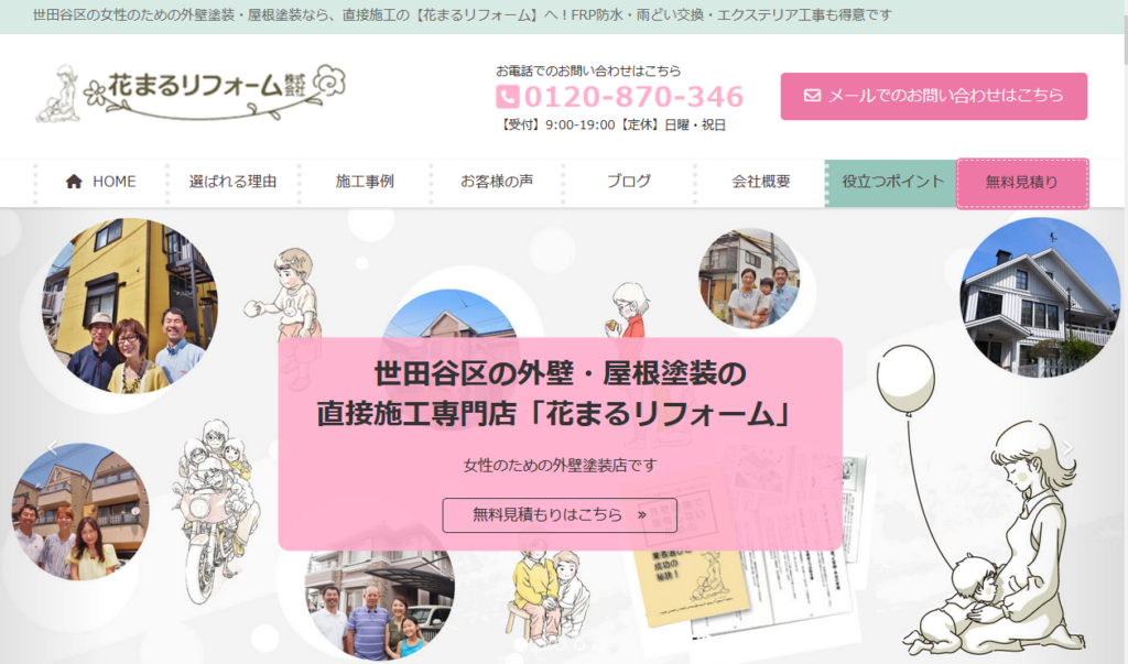 花まるリフォーム株式会社は、世田谷区を中心に杉並区、練馬区などに対応している施工専門店です。